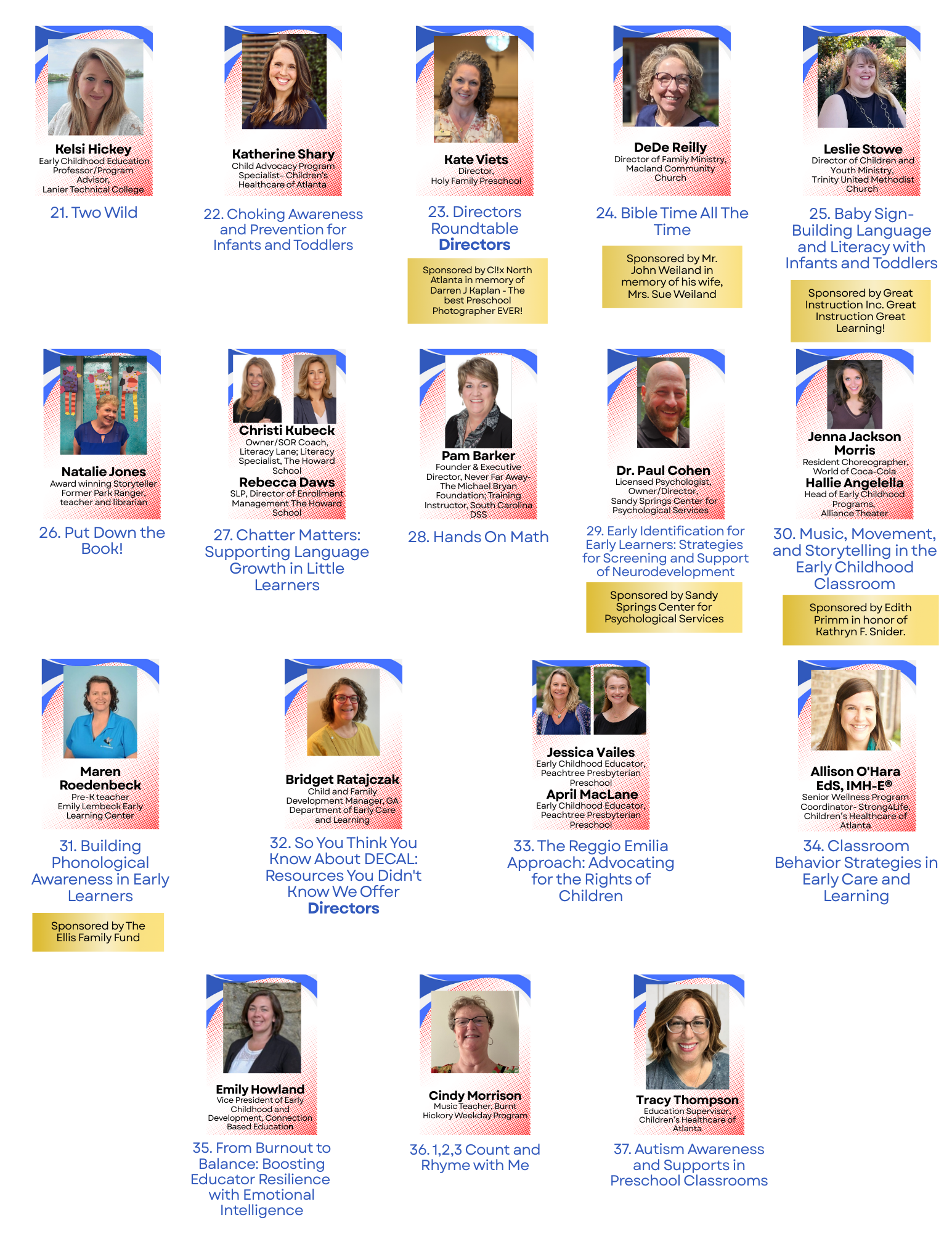 Our Sponsors: Gold Sponsors are Atlanta Speech School and Rollins Center. Silver Sponsors are The Junior League of Atlanta, New Avenues Dyslexia Program, and United Way . Bronze Sponsors are Readsource, DEAL Center, and Quality Care for Children.